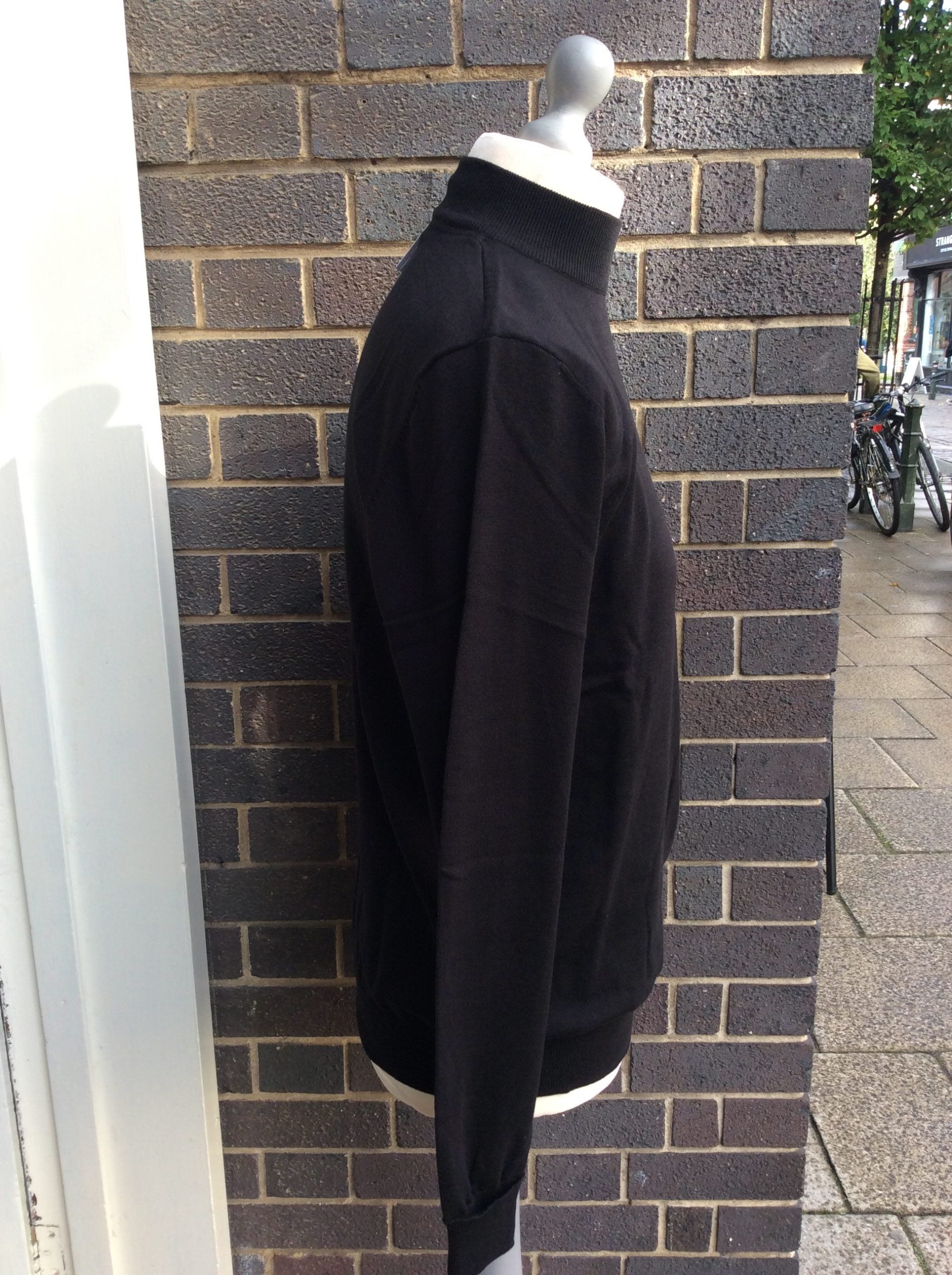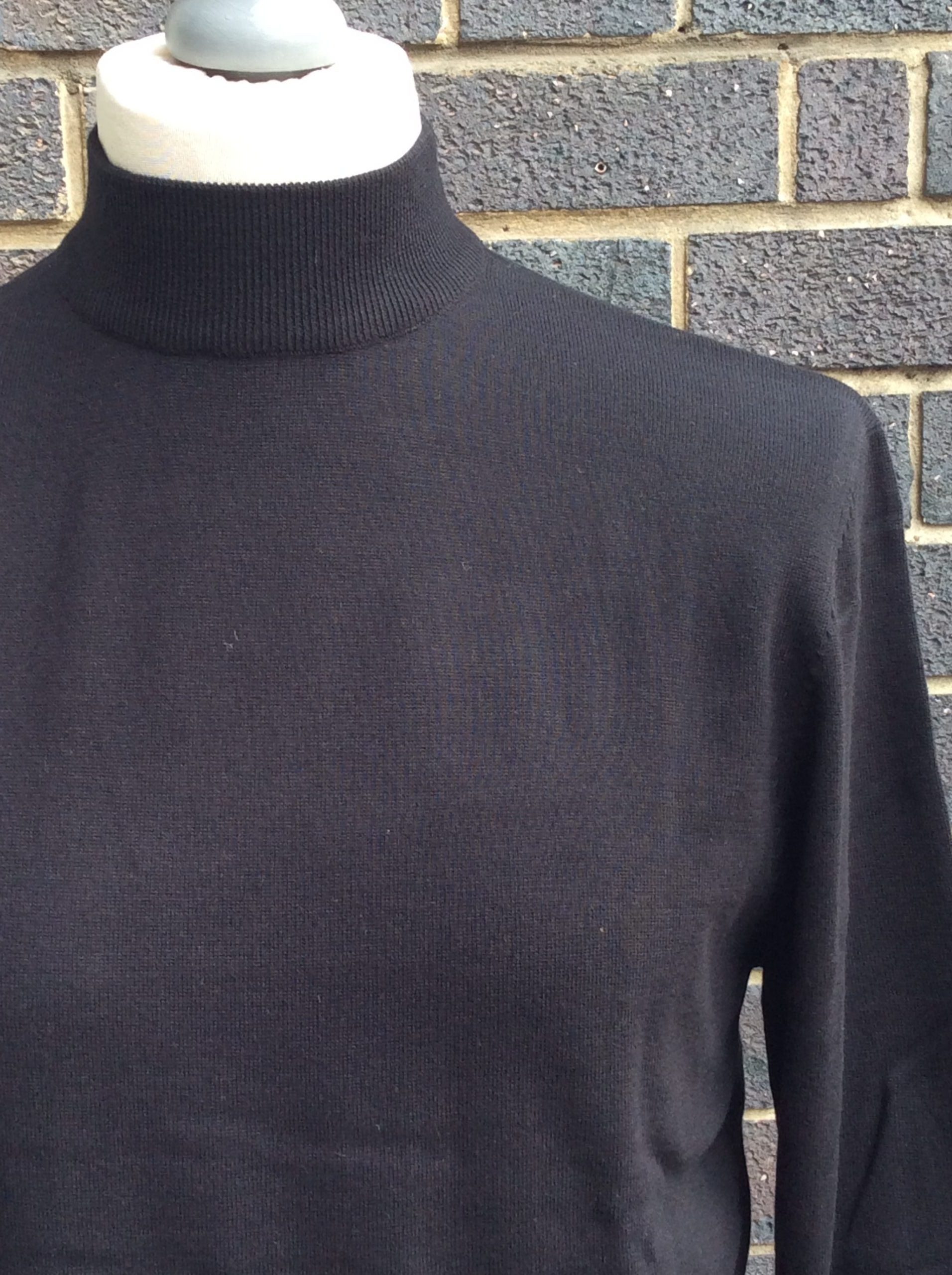 Blue, long sleeved, knitted turtle neck with fold-back cuffs.
