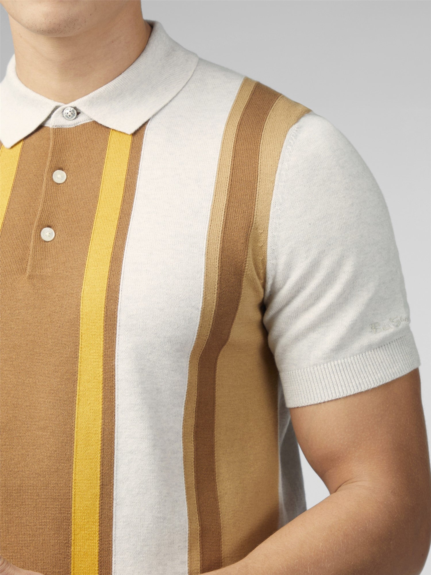 This short sleeve vertical stripe knitted polo features a 3-button placket and a Ben Sherman embroidery on the left sleeve. A regular fit, made from 100% cotton