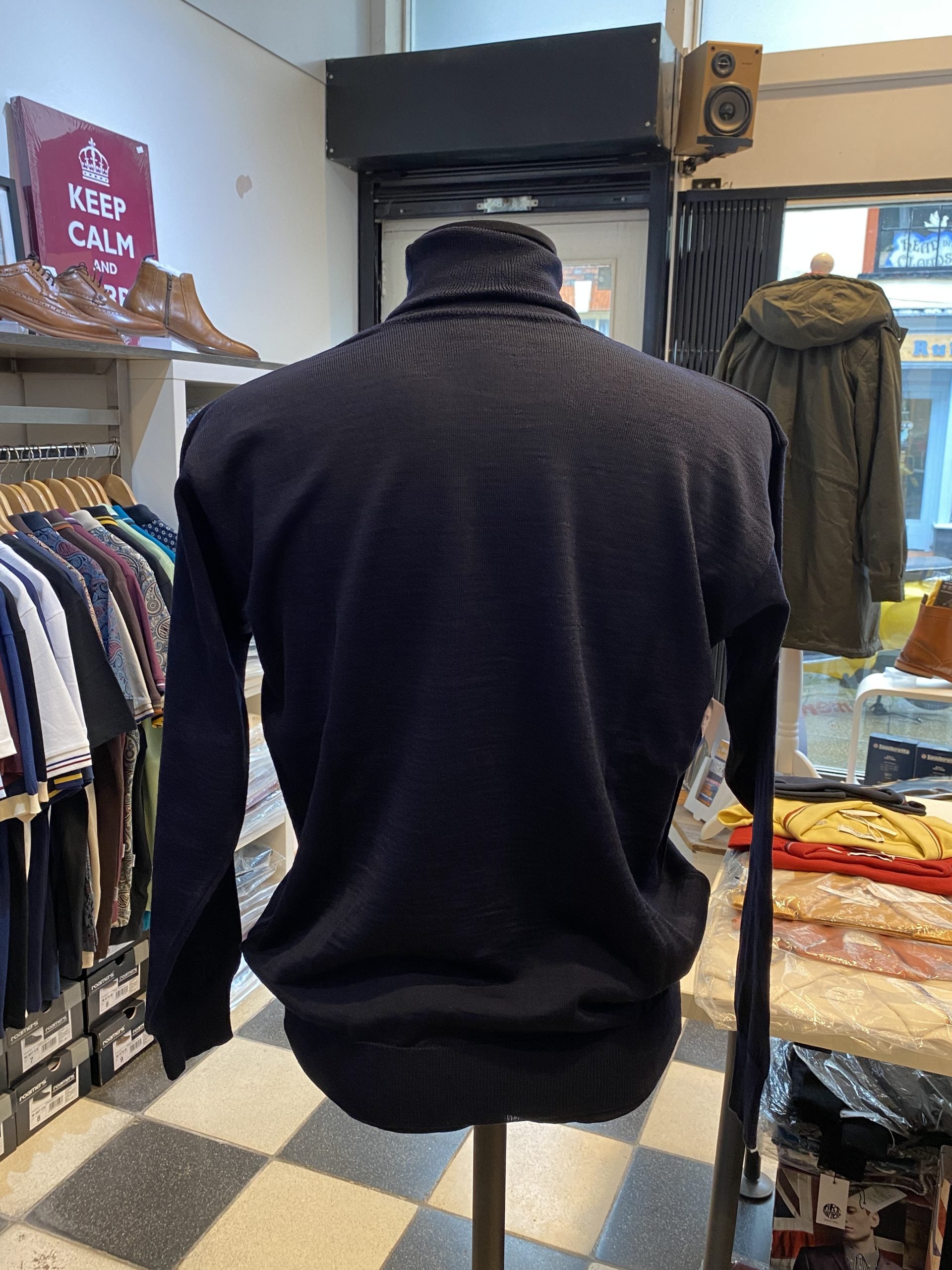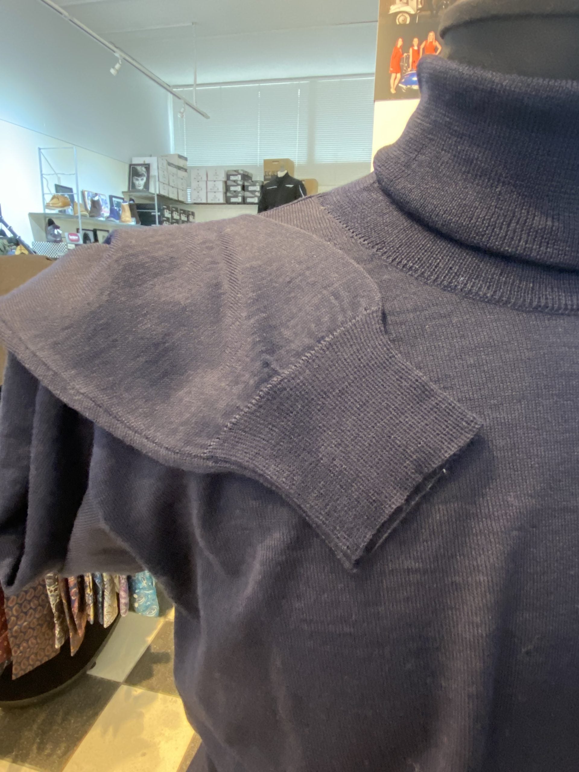 Made in Italy from the finest blend of Merino wool and acrylic yarn. Super fine light weight 21 gauge. 50% Merino Wool 50% Acrylic Classic Roll Neck Sweater.
