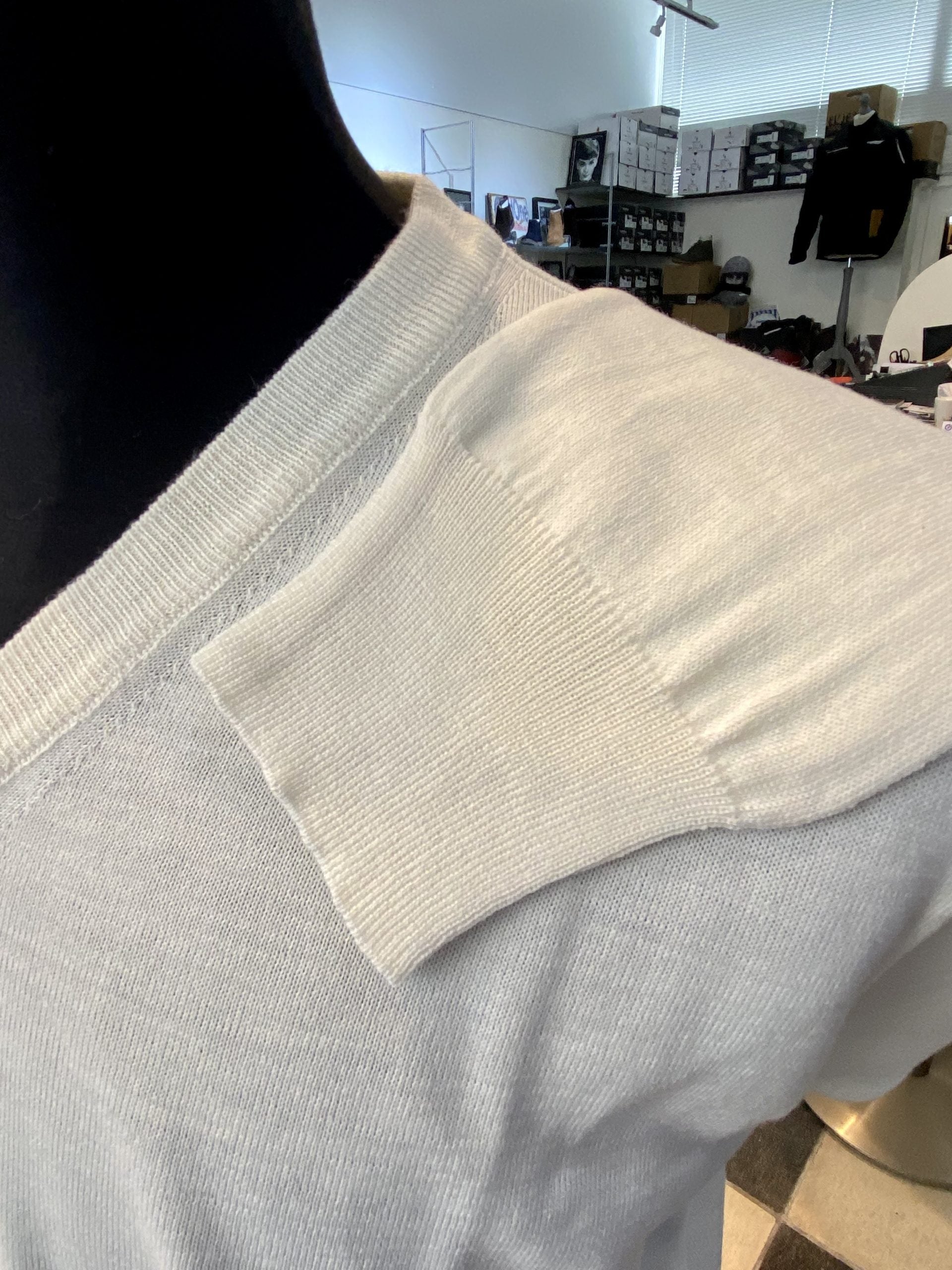 Made in Italy from the finest blend of Merino wool and acrylic yarn. Super fine light weight 21 gauge. 50% Merino Wool 50% Acrylic sweaters.