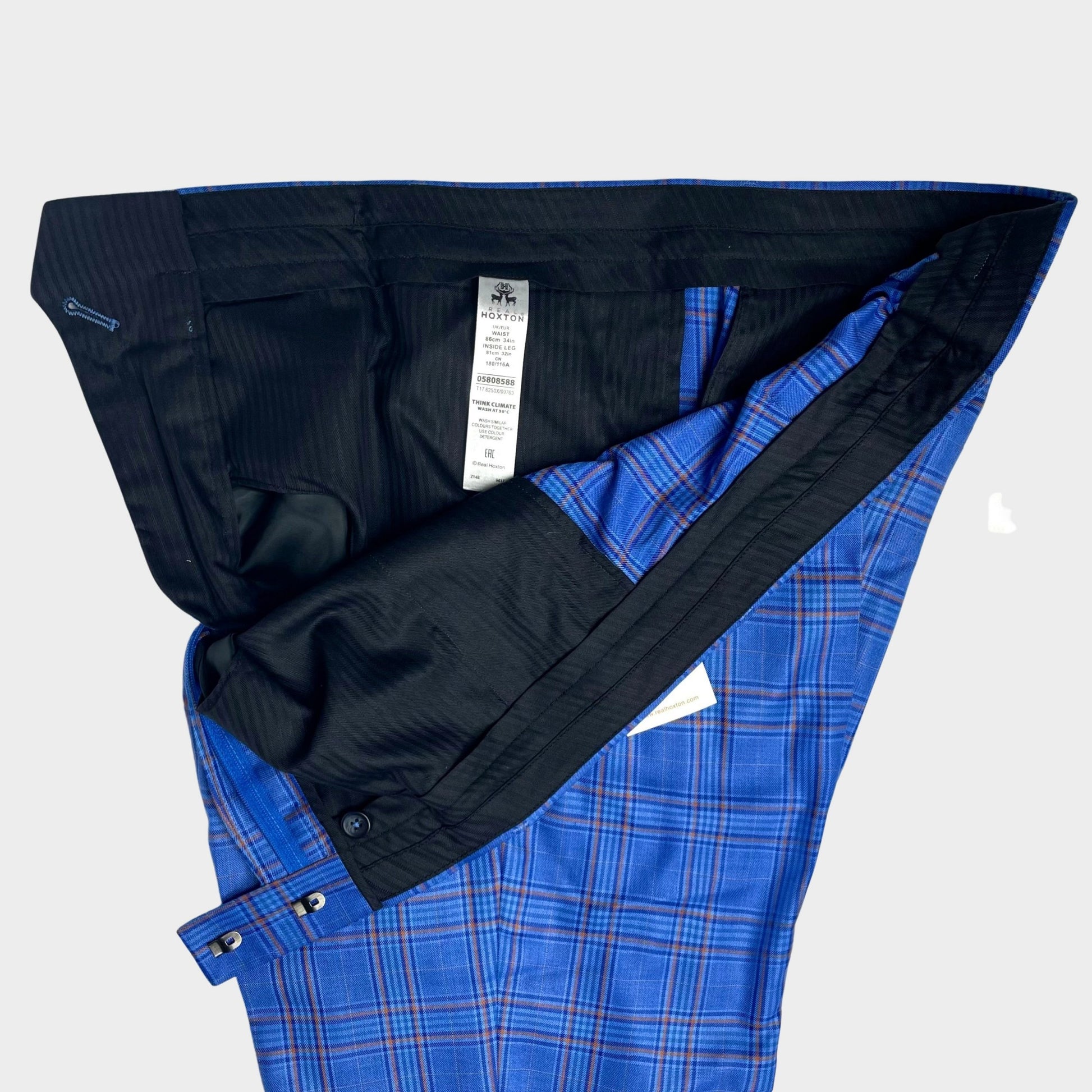 Real Hoxton Ink Blue Checked Sta-Press Trousers