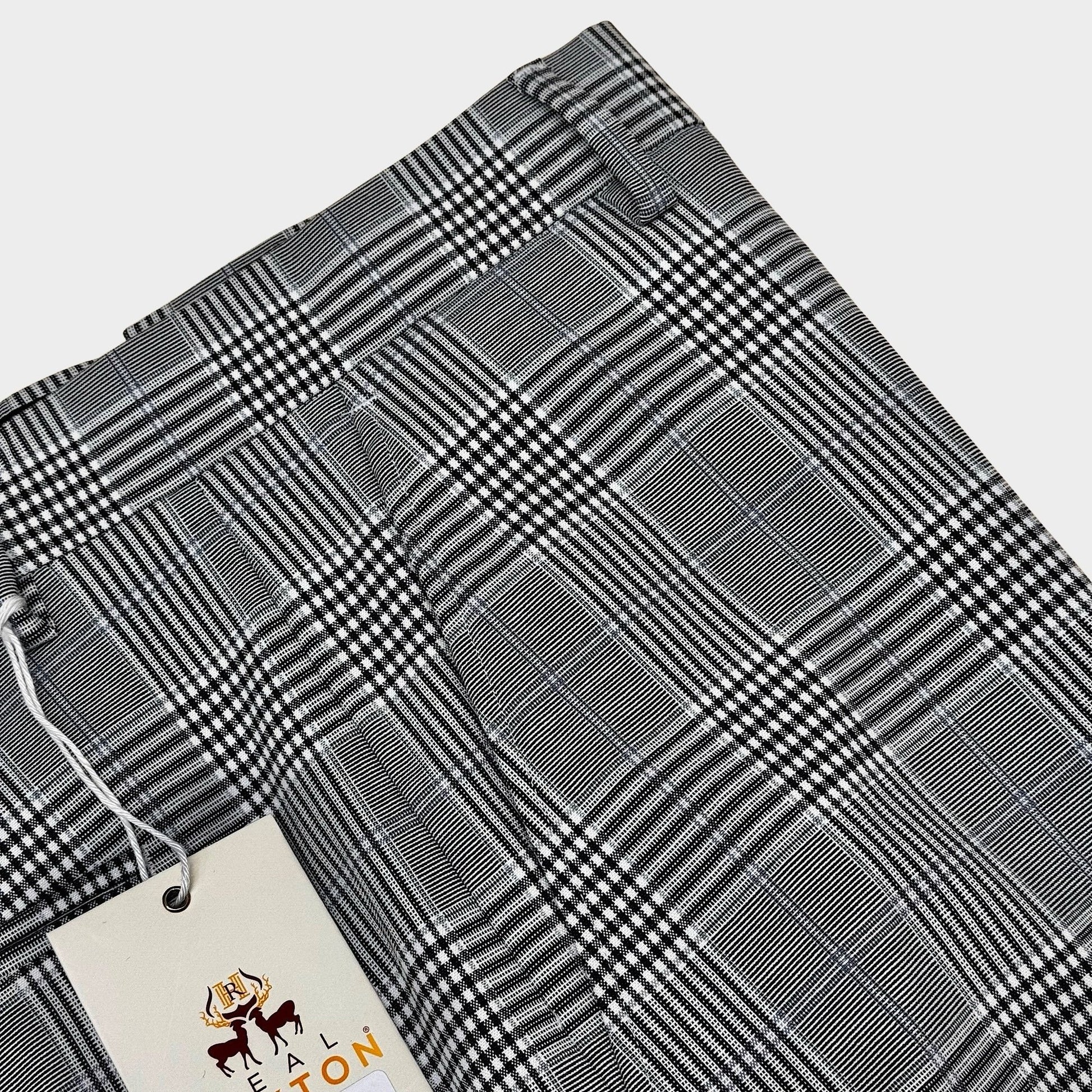 Real Hoxton’s Check Trousers are hand-crafted from the finest wool mix fabric and boast a flat front, mid rise, classic slanted side pockets, one buttoned back pocket, half-length satin lining and cotton belt and pocket detailing. Complete with a vintage slim fit, straight leg and a stylish tapered profile. A perfect harmony of comfort, quality and class.
